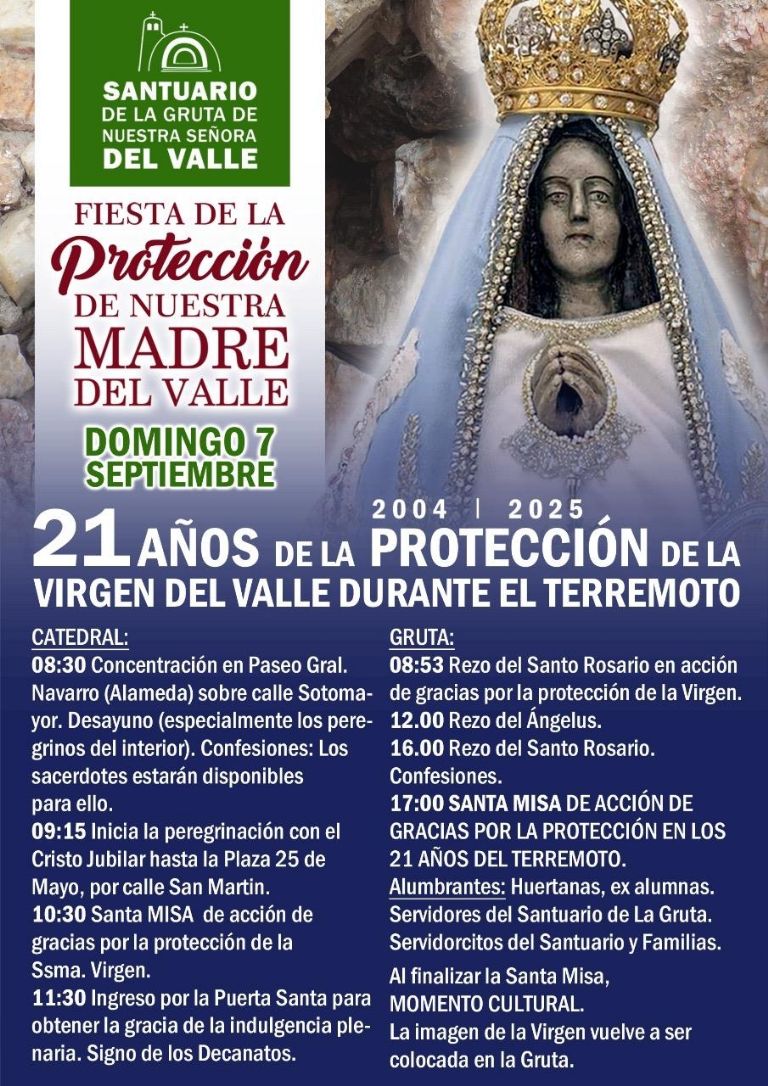 Este domingo 7 de septiembre, jornada en que se conmemora la Protección de Nuestra Madre del Valle durante el sismo de 2004, se realiza asimismo el Jubileo Diocesano, que coincidirá con el cierre de las festividades marianas.