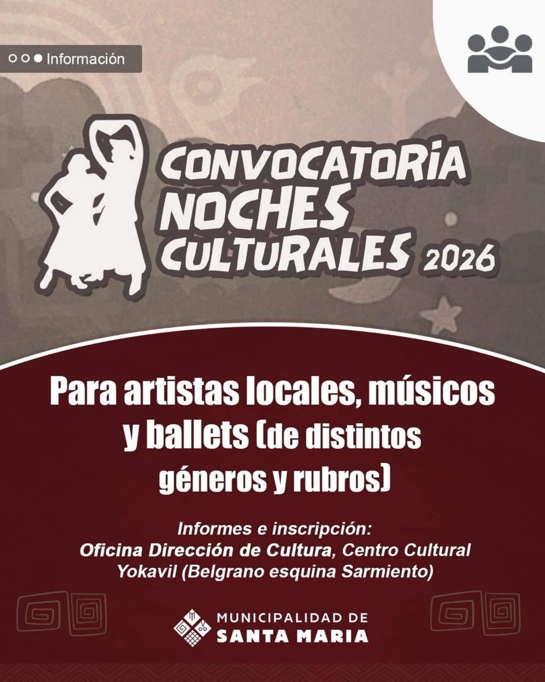 Desde la organización invitan a sumarse y ser protagonistas de las Noches Culturales 2026, una propuesta que pone en valor el talento santamariano y fortalece la identidad cultural local.