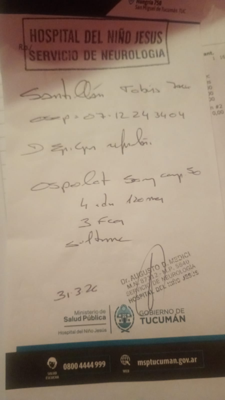 Ante esta situación, la familia decidió hacer público su pedido con la esperanza de recibir ayuda. “Si alguien tiene esta medicación, como indica la receta, sería de mucha ayuda”, expresó la madre, preocupada por la continuidad del tratamiento de su hijo.
