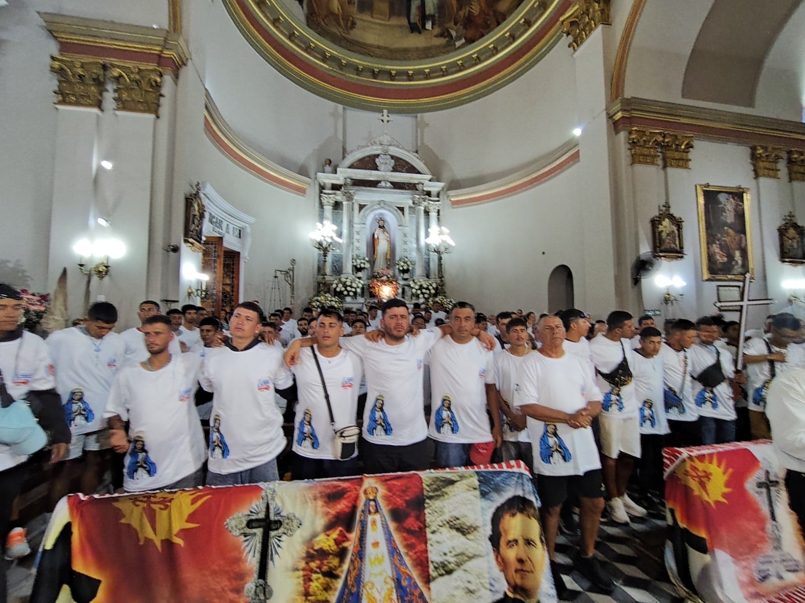 Cientos de fieles devotos y peregrinos colmaron el principal Santuario mariano de Catamarca para participar de la Eucaristía central de esta jornada, entre los que se destacó presencia de los integrantes de los Hogares de Cristo de Santiago del Estero, quienes peregrinaron para honrar a Nuestra Madre del Valle, acompañados por el padre Pepe Di Paola, quien también concelebró la Santa Misa.