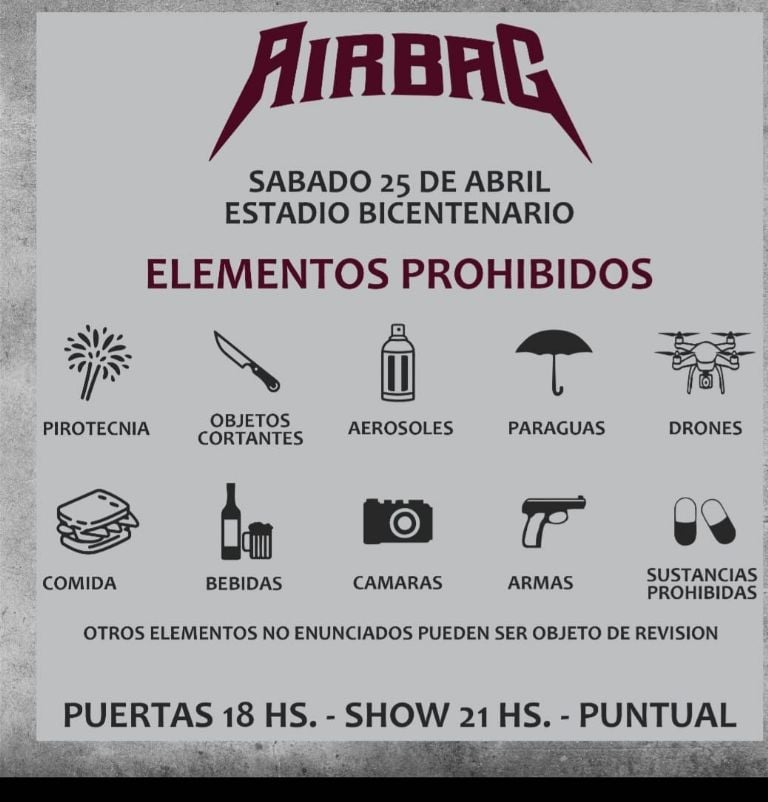 Desde la productora informaron que no se permitirá el ingreso de: pirotecnia, objetos cortantes, aerosoles, paraguas, drones comida, bebidas cámaras, armas, sustancias prohibidas y otros elementos que la Seguridad detecte y pueden ser objeto de revisión.