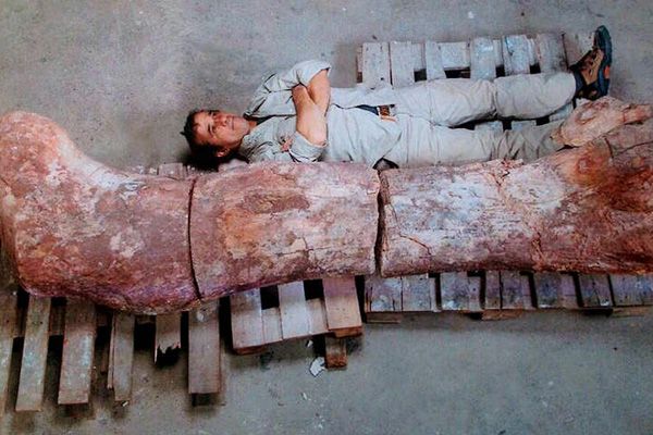 El dinosaurio más grande del mundo es Argentino. Así lo afirman investigadores del Museo Egidio Feruglio de Chubut, que hoy presentaron su hallazgo: los restos de un enorme ejemplar, con una masa corporal 77 toneladas métricas, 5 más que el Argentinosaurio encontrado en Neuquén. Su peso era el equivalente al de 14 elefantes africanos.