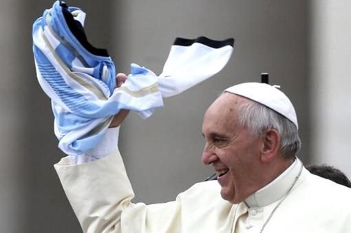 El Papa Francisco participó con una camiseta argentina de la recorrida por la Plaza San Pedro, mientras en Porto Alegre la Selección esperaba por su choque frente a los nigerianos.