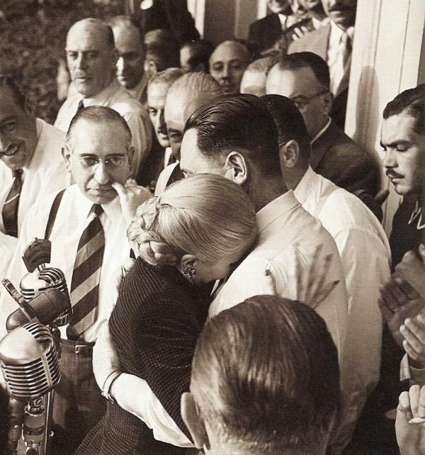 Entre las fotografías compartidas figuraban algunas muy famosas como el abrazo con el ex presidente Juan D. Perón en el balcón de la Casa Rosada, y sobre ella opinó: "No es un abrazo. Está pidiendo que la proteja. Por lo menos eso siempre me pareció a mí".
