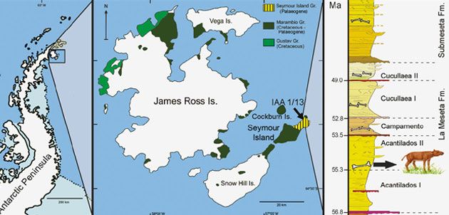 encontrados cerca de la base Marambio, en la Isla Seymour, en un yacimiento del