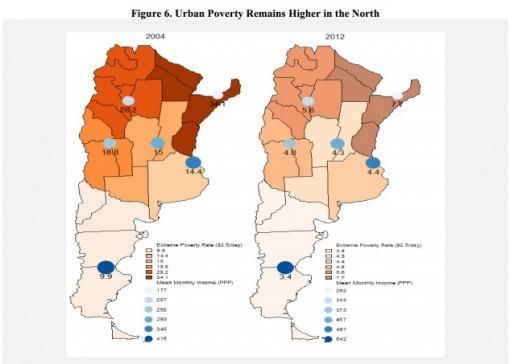 Sin embargo, el estudio destaca que "las disparidades regionales significativas persisten con respecto a la pobreza y el acceso a los servicios básicos servicios. La brecha entre las regiones ha crecido desde la crisis de 2002, con la Patagonia superando ampliamente Regiones Noreste y Noroeste”.