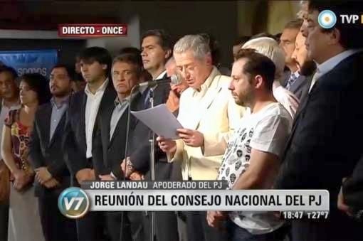 El pronunciamiento del partido, dado a conocer esta tarde por el apoderado Jorge Landau y el titular del PJ, Eduardo Fellner, tiene por objeto marcar su "apoyo" al gobierno de Cristina Fernández de Kirchner, en el marco de la investigación del atentado a la AMIA de 1994 y de la reciente muerte del fiscal federal Alberto Nisman.