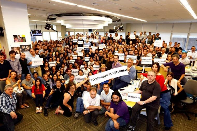 En el mismo diario, una asamblea convocada por las comisiones internas de prensa y gráficos aprobó esta tarde un repudio "al editorial contra juicios de lesa humanidad" y señaló que, desde la diversidad, rechaza "la lógica que pretende construir el editorial de hoy, que en nada nos representa".