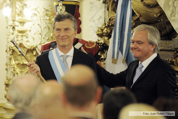El presidente Mauricio Macri recibió en la Casa de Gobierno y de manos del presidente provisional del Senado, Federico Pinedo, los atributos de mando presidencial que indican el inicio de su mandato, luego de jurar ante la Asamblea Legislativa, tal como lo marca la Constitución Nacional.