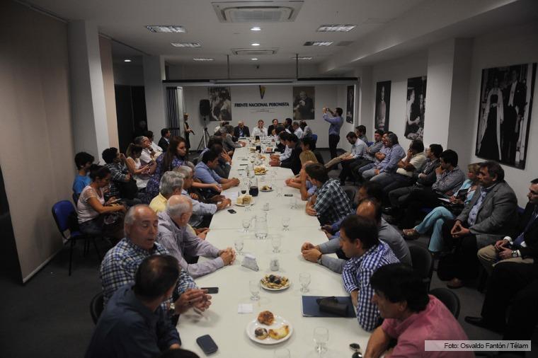 Antes del comienzo de la reunión se produjo un encuentro entre jefe comunales peronistas de la provincia de Buenos Aires, en el que se decidió acercarle un documento a la gobernadora Maria Eugenia Vidal para pedirle, entre otras cosas, que se avance con el giro de recursos coparticipables.