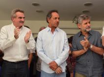 acompañado por los ex funcionarios Agustín Rossi y Daniel Filmus, Scioli