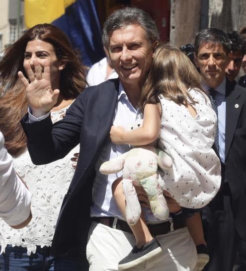 por una columna arbolada, el presidente, su esposa Juliana Awada y su hija