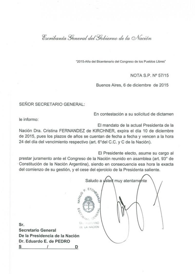 la Nación, Cristina Fernández de Kirchner, expira el 10 de diciembre de 2015,