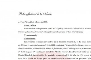 Respecto a este punto, el juez Rafecas no sólo dice que no hay forma de argumentar la hipótesis de la comisión de un delito sino que afirma que "la evidencia reunida la desmiente de un modo rotundo y lapidario”.