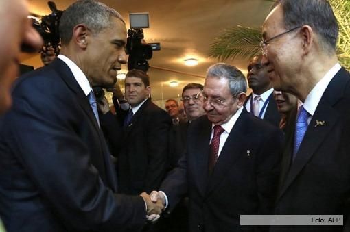 La televisión panameña mostró reiteradamente la escena -sin sonido de ambiente- del encuentro de ambos mandatarios, que mañana mantendrán una reunión bilateral en el marco de la reciente decisión de ambos gobiernos de buscar estrechar sus relaciones diplomáticas, rotas hace más de 50 años.