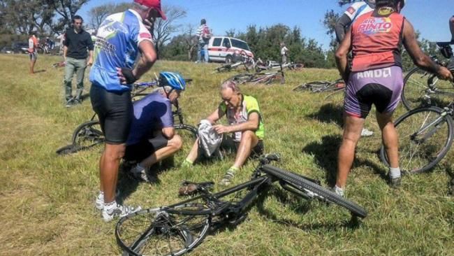 Siete ciclistas resultaron heridos, pero ninguno tuvo, increíblemente, fracturas. El conductor de la camioneta también se vio afectado. Fuente: Día a Día.
