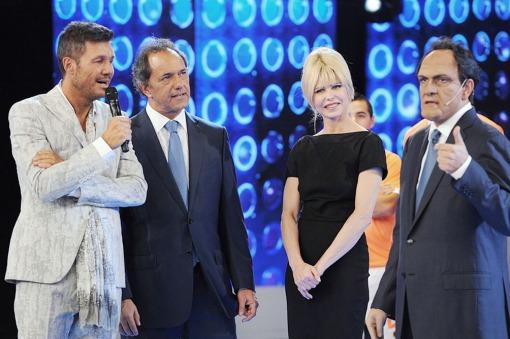 Un Macri en zapatillas y jean acompañado de su bella y desenvuelta esposa pareció en comienzo de un momento televisivo de amplio triunfo para el alcalde porteño, acostumbrado como pocos a ese maridaje tan complejo entre política y espectáculo. Sin embargo, el personaje bien logrado de su imitador Martín Bossi, y fundamentalmente el humor corrosivo desplegado sobre el candidato nubló un tanto la mirada de Mauricio, un tanto incómodo con la caricatura concheta que se desplegaba sobre él. Lo del "mate cocido con trufas y masas finas” y el "moscato, pizza y cheesecake” pintaron el perfil derechoso del Jefe de Gobierno porteño.