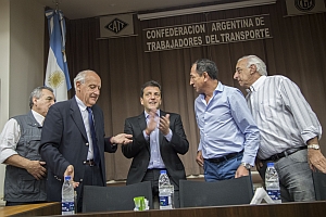 De la reunión participaron los representantes de los gremios del Transporte Juan Carlos Schimd(Fempinra), Omar Maturano (La Fraternidad), Facundo Moyano (SUTPA), Roberto Fernández (UTA),Omar Pérez (Camioneros), entre otros. Ambito.