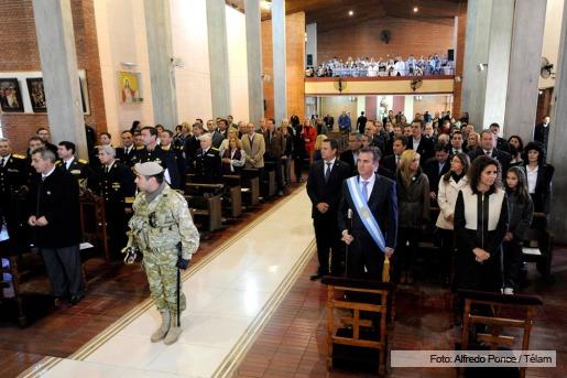 Macri se trasladó hasta la Catedral metropolitana, donde depositó una ofrenda floral ante el mausoleo en el que descansan los restos del general José de San Martín, y participó del Tedeum que ofició el arzobispo de Buenos Aires, monseñor Mario Poli.