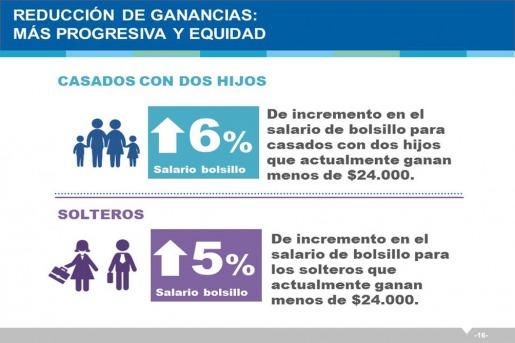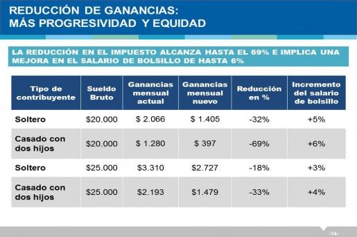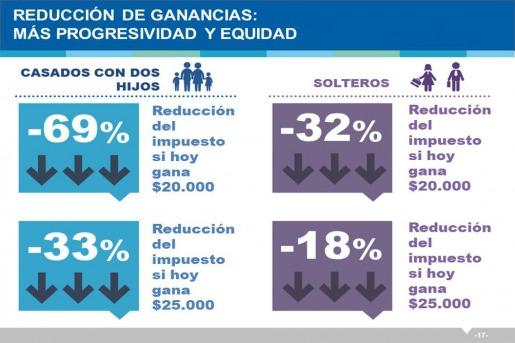 También precisó que para el caso de un soltero, "con sueldo bruto de $ 20.000 que paga $2.000, tendrá una reducción del 32% y va a pagar $1.400".