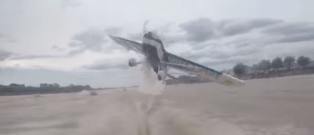 La pequeña aeronave casi causa una tragedia, según puede verse en el video filmado por una cámara a bordo de la embarcación.