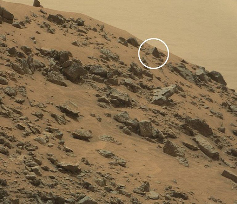 Las imágenes fueron tomadas por la sonda Curiosity el 7 de mayo de 2015, y de ellas se han extraído las capturas que dejan ver la formación "del tamaño de un automóvil" que sobresale en la superficie.