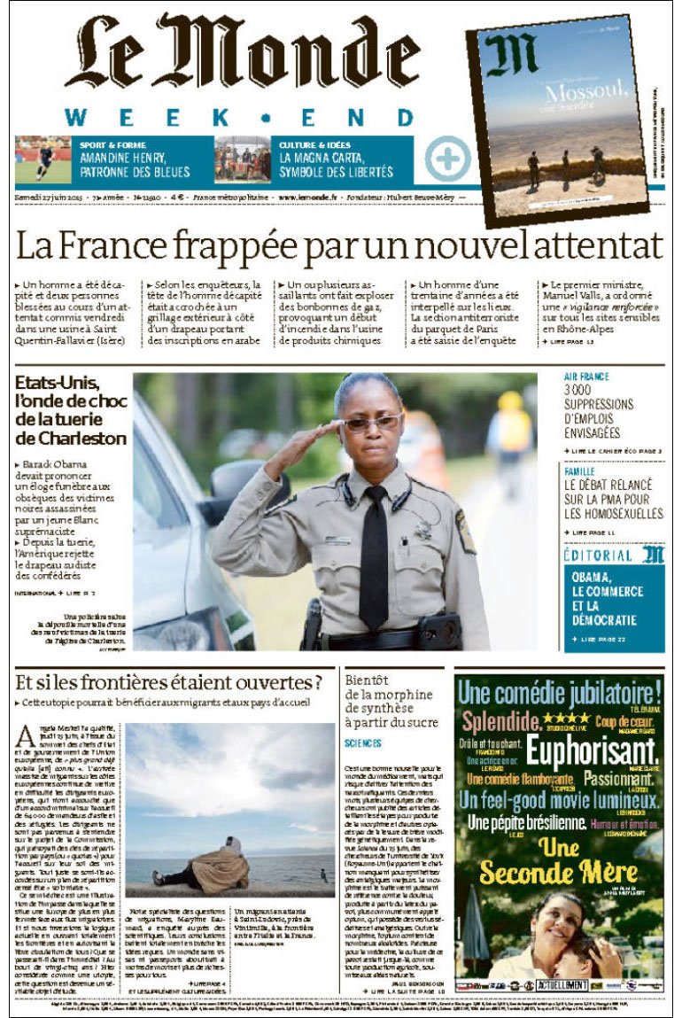 "Francia golpeada por un nuevo atentado", describió con pesar el diario Le Monde después del segundo ataque sufrido en menos de seis meses. Además, se pregunta: "¿Y si las fronteras estuvieran abiertas?"