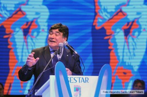 El candidato a vicepresidente de Frente para la Victoria, Carlos Zannini, habló en el acto de Gestar en el que participó con gobernadores y dirigentes del PJ. "Néstor, que fue un hombre que gastó su vida dejando todo en la política, llegó diciendo que no iba a dejar sus convicciones al entrar a la casa rosada. Y ahora estamos viendo el triste espectáculo de quienes van abandonando una a una sus convicciones para ver si pueden llegar a la puerta de la Casa Rosada", dijo en su discurso.