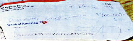La fotocopia del cheque de 200.000 dólares fue encontrada