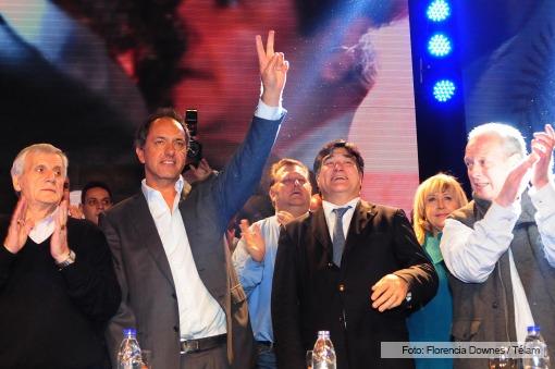En un acto marcado por la estética sciolista y bajo el lema "La victoria es trabajo y producción”, el candidato a presidente por el FpV se refirió al futuro de los planes sociales y remarcó que "el desafío es que con educación reemplacemos cada vez más los planes sociales por más trabajo genuino”.