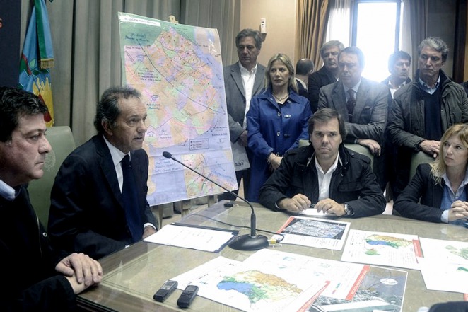 Sobre el intento de sectores de la oposición de canalizar políticamente esta situación, Scioli sostuvo que "nosotros con esto no hacemos ni ausencia ni demagogia política" y aclaró que "el adversario es el cambio climático".