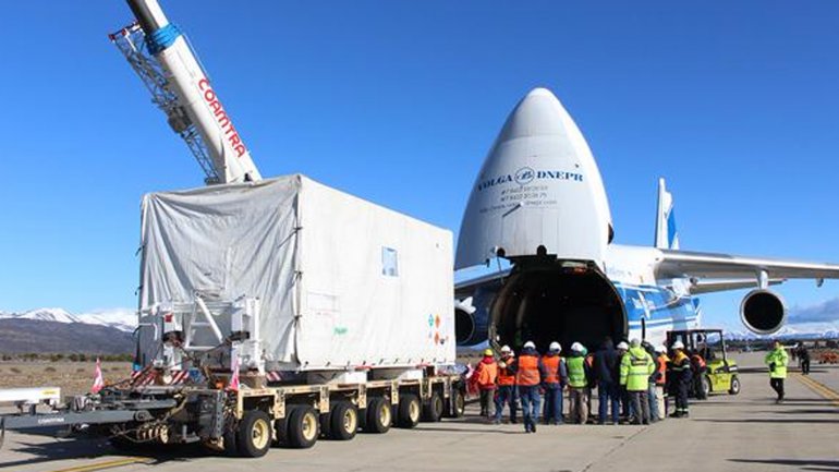 El segundo satélite geoestacionario nacional, construido por la empresa Invap en Bariloche, fue trasladado en un contenedor especial hasta el aeropuerto internacional de esa ciudad.
