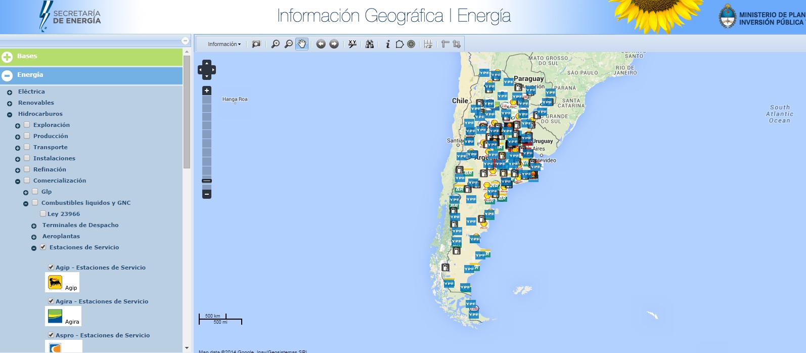 desplegará un cuadro con las estaciones de servicio de esa región. Con sólo