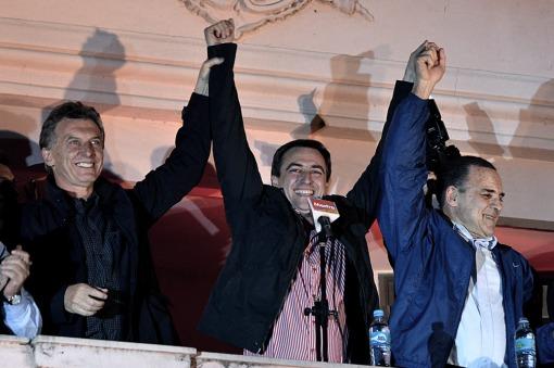 Acompañado por el candidato presidencial de Cambiemos, Mauricio Macri y el titular nacional de la UCR, Ernesto Sanz, el reelecto intendente habló a la militancia desde el balcón de la Casa Radical para agradecer el esfuerzo y la colaboración, y afirmó que seguirá trabajando "en el marco de las propuestas de la campaña electoral".