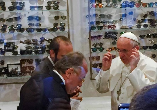 Jorge Bergoglio se hizo revisar la vista antes de ensayarse algunas gafas, durante unos cuarenta minutos. Según la agencia de informaciones religiosas I-Medias, el papa le pidió al encargado de la tienda que le cobrara el precio normal, sin hacerle reducciones ni favores.
