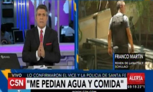 En declaraciones al canal C5N, el hombre dijo que cuando llegó la Policía al lugar, los condenados se estaban poniendo ropa de trabajo que él llevaba en su mochila, y que no hubo disparos al momento de la detención.