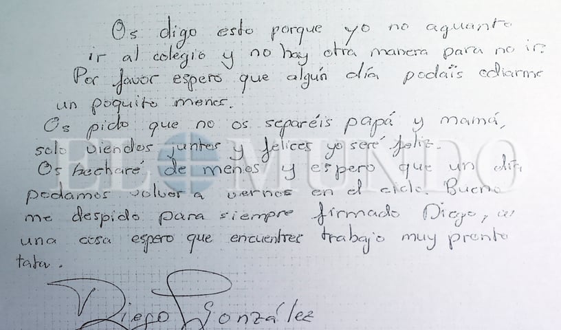 el cielo", agregó Diego González en la misiva, en la que además les pidió: