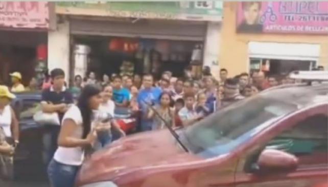 Producto de la interrupción, el tráfico se detuvo y todos los transeúntes comenzaron a participar del hecho aportándole elementos contundentes para golpear el auto del hombre.