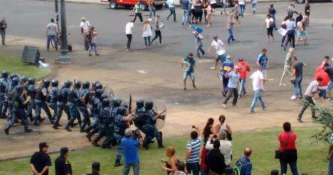 cuando imprevístamente, algunos de ellos comenzaron a arrojar piedras y la