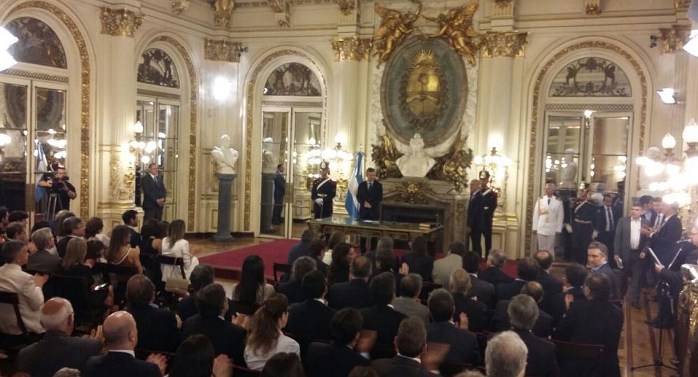 En el Salón Blanco de la Casa Rosada asistieron además el Jefe de Gabinete, Marcos Peña, la ministra de Desarrollo Social, Carolina Stanley, la gobernadora de Buenos Aires, María Eugenia Vidal, el viceje de Gobierno porteño, Diego Santilli y la titular de la Oficina Anticorrupción, Laura Alonso.