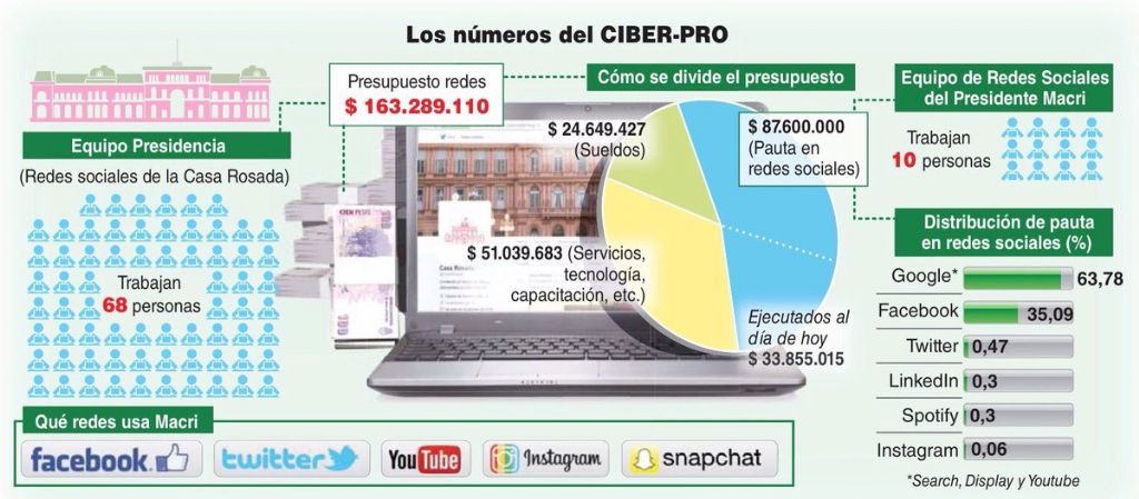 El equipo de la Casa Rosada de redes cuenta con 68 personas, a quienes les pagan casi $ 24 millones. Los otros $ 51 millones los divide el Gobierno en servicios, tecnología y capacitación.