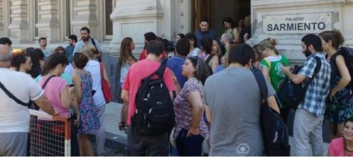 protesta comenzó con una asamblea a las nueve en la sede del Palacio Pizzurno,