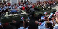 manos, despidieron los restos del líder cubano que salieron en caravana pasadas