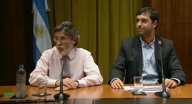 primer abrazo luego de finalizado el discurso-, de Judiciales, Julio Piumato,