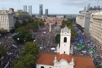 La columna llegó a la Plaza encabezada por referentes de Madres y Abuelas de Plaza de Mayo y de H.I.J.O.S., que partieron de la Avenida de Mayo a la altura de la calle Piedras, seguidos por miles de manifestantes que confluyeron desde el Obelisco y el Congreso.