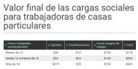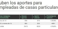 Los aportes jubilatorios son sólo una parte de las cargas sociales que las familias deben pagar por tener una empleada doméstica en sus hogares. Por eso, el impacto final del incremento varía según la cantidad de horas que la empleada doméstica trabaje en un hogar. Para quienes trabajen menos de 12 horas semanales, el pago total se irá a $176 (lo que implica un aumento de 9,31%); para quienes trabajan entre 12 y 16 horas, ascenderá a $252 (12,5%) y para quienes se desempeñan por más de 16 horas a la semana, subirá a $419 (37%).