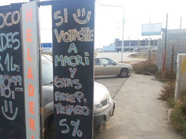 El local está ubicado en Albert Schweitzer 1450 de la ciudad fueguina. Desde el sur del país, su dueño, Jorge explicó que "la elección del nuevo presidente fue tan indignante…, las ventas han bajado un 50% desde que asumió Macri".