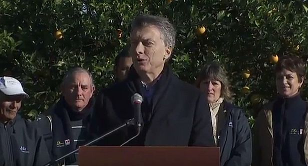 Macri encabezó en Concordia, Entre Ríos, la firma de un acuerdo comercial-científico entre Coca Cola y el INTA para promover el cultivo de variedades de citrus, que son utilizados por los productos de la marca multinacional; y luego viajará a Yapeyú, Corrientes, por el lanzamiento de los festejos por los 200 años de Independencia.
