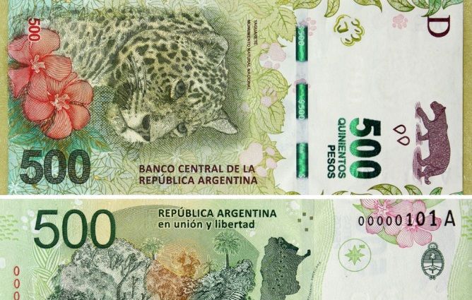 Con el verde como color predominante, cuenta además con estrictas medidas de seguridad como marca de agua que reproduce al yaguareté y al número 500, fibras fluorescentes a la luz ultravioleta y un hilo de seguridad que cambia del color verde al azul.