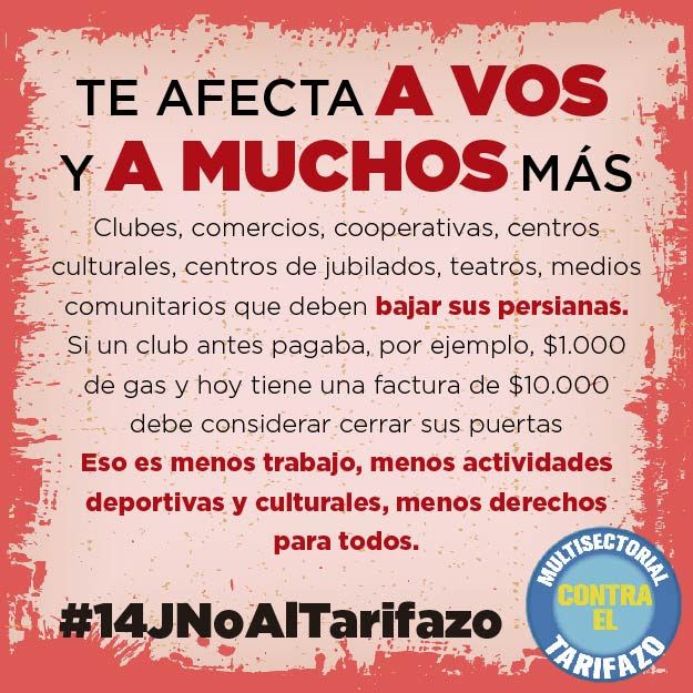 aumento de los servicios públicos convocamos en todo el país hoy 14 de Julio a
